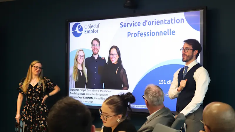 Malgré un contexte de financement incertain et des coupures ayant particulièrement affecté les clientèles vulnérables, Objectif Emploi a maintenu son cap avec rigueur et créativité. La collaboration avec différents partenaires, comme AXTRA, Service Québec ou encore le CQRHT, a permis de renforcer la portée des actions et de consolider des réponses adaptées aux enjeux du terrain.